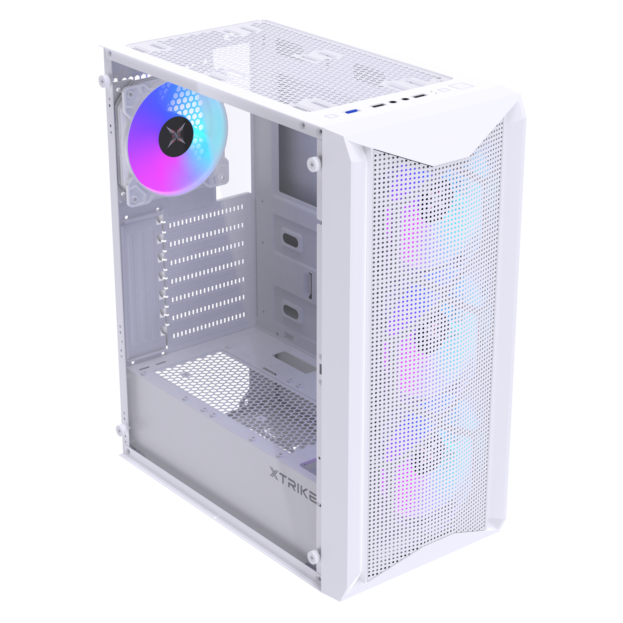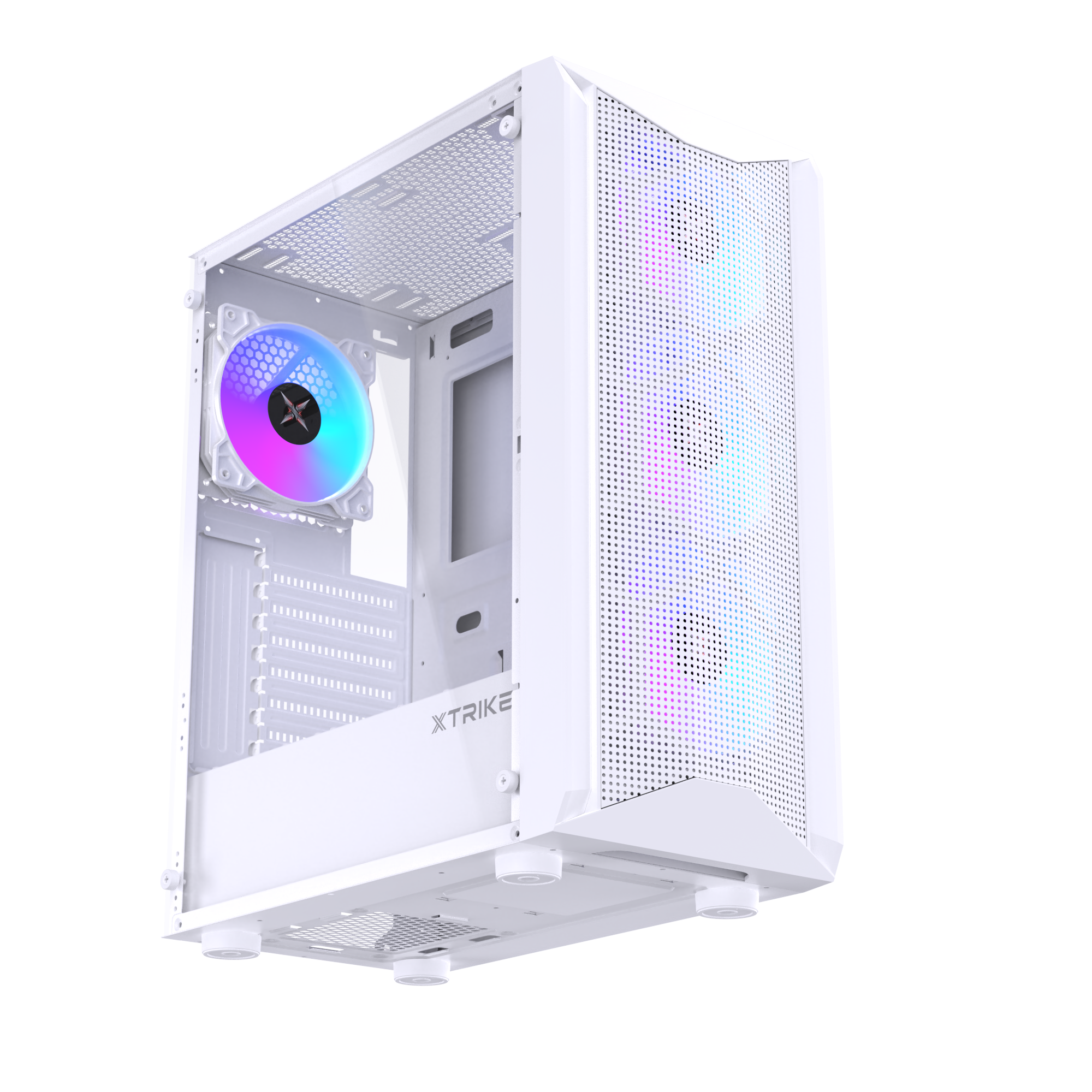 Le boîtier Xtrike Spider White est un boîtier gamer élégant et moderne, conçu pour allier style, performance et refroidissement optimal. Son design blanc avec panneaux transparents met en valeur votre configuration, tandis que 4 ventilateurs RGB modifiables offrent un éclairage personnalisable pour un look unique.