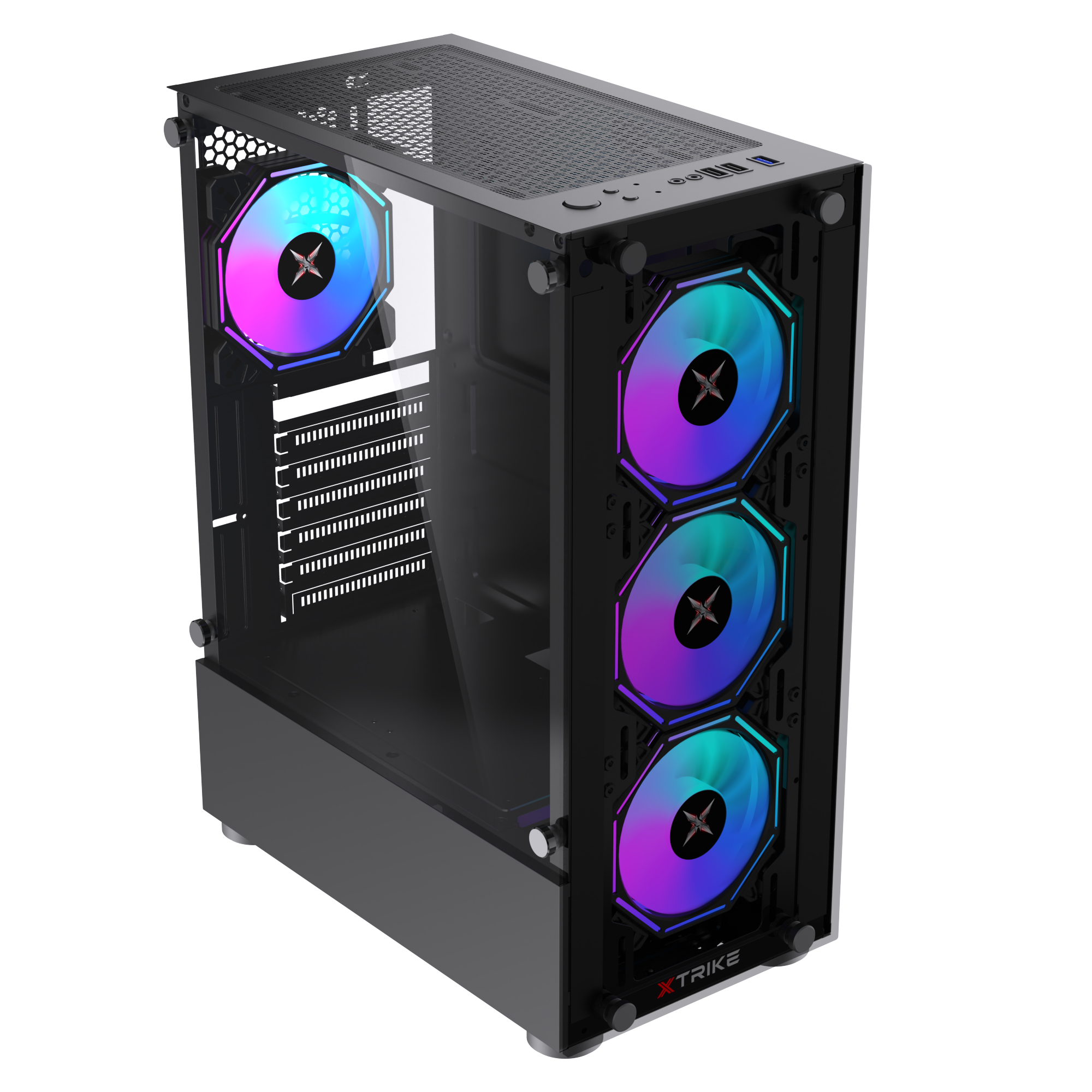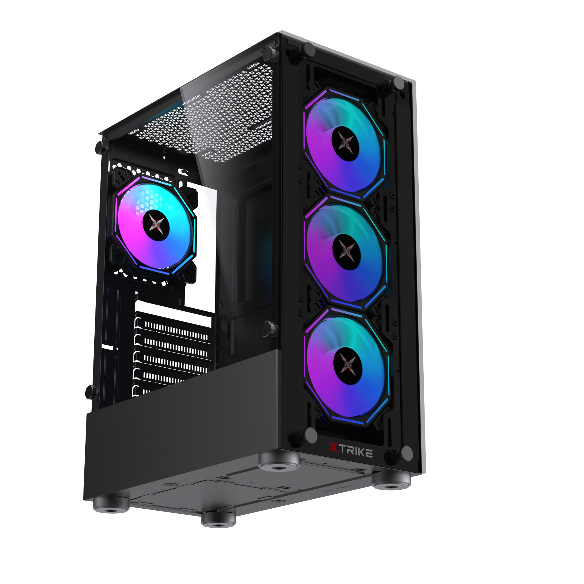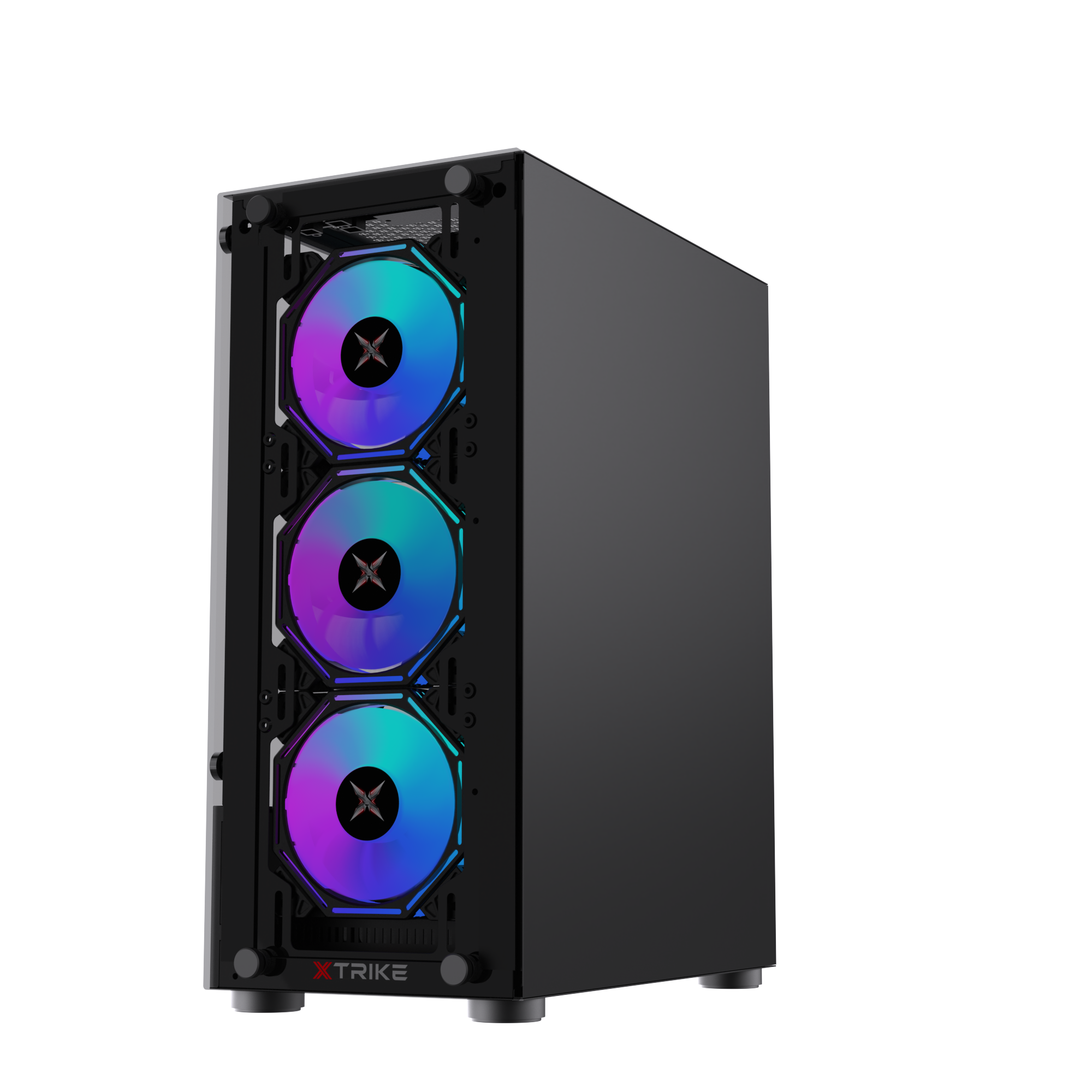 Compatible avec les cartes mères ATX, Micro-ATX et Mini-ITX, le Xtrike Shadow dispose de suffisamment d’espace pour accueillir des cartes graphiques longues, plusieurs ventilateurs ou un système de watercooling. Idéal pour les gamers et créateurs qui veulent un PC performant, élégant et modulable avec un look RGB immersif.
