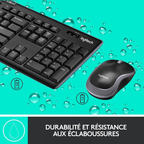 Grâce à la technologie sans fil 2,4 GHz, la Logitech MK270 vous offre une connexion fiable et stable avec votre ordinateur, vous permettant de travailler sans encombrement de câbles. Vous pouvez vous déplacer librement jusqu’à une distance de 10 mètres de votre ordinateur, vous offrant ainsi une liberté totale pour travailler comme vous le souhaitez.